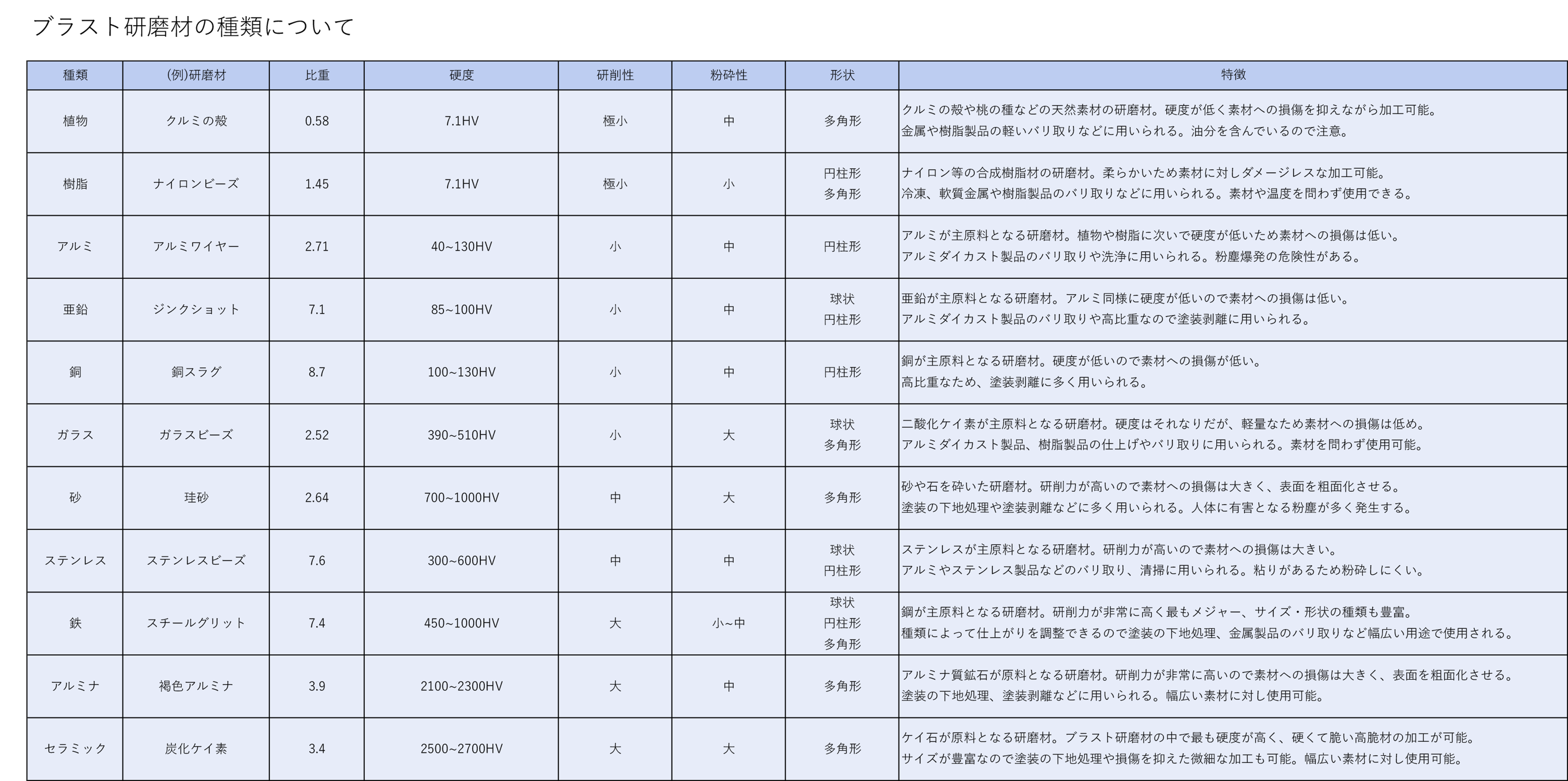 噴射・投射さえ可能なら研磨材となりますので、無限に種類はありますが…